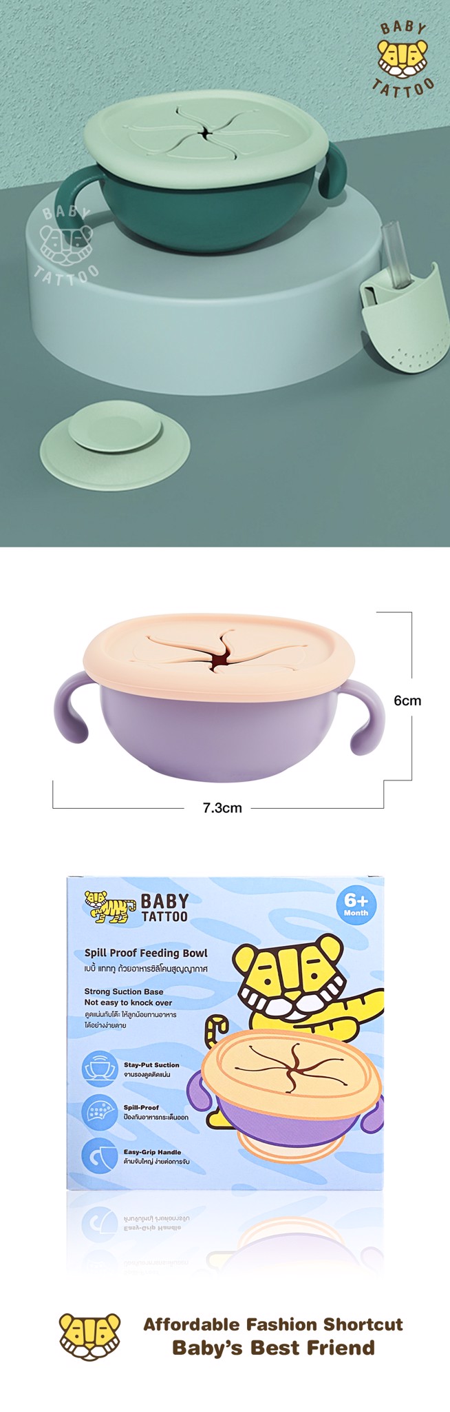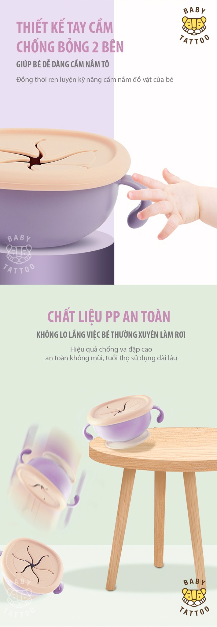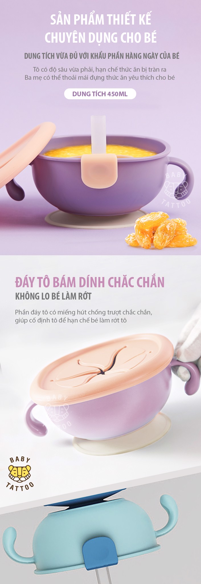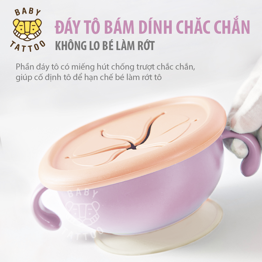 - Đáy tô bám dính chắc chắn, không lo bé làm rớt