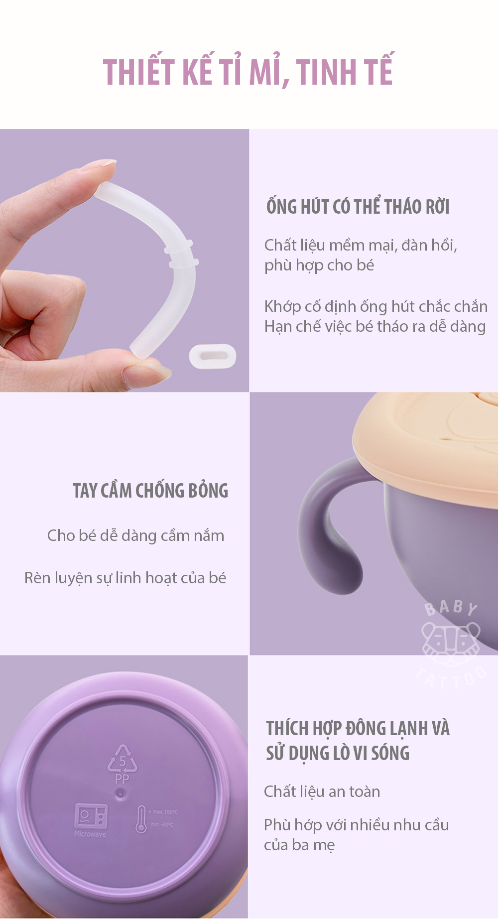 - Thích hợp cho bé hút canh, sữa hoặc các dạng nước ép rau củ