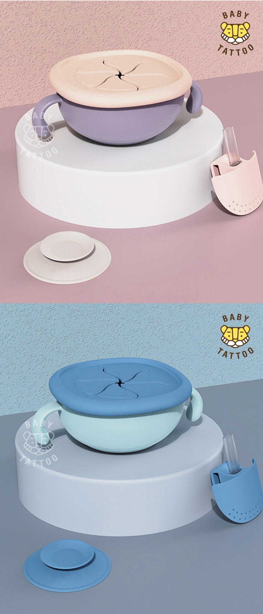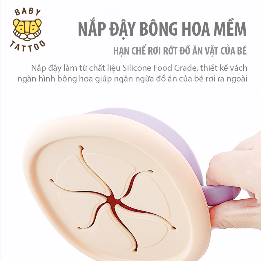 - Nắp đậy hình bông hoa, hạn chế rơi rớt đồ ăn vặt của bé