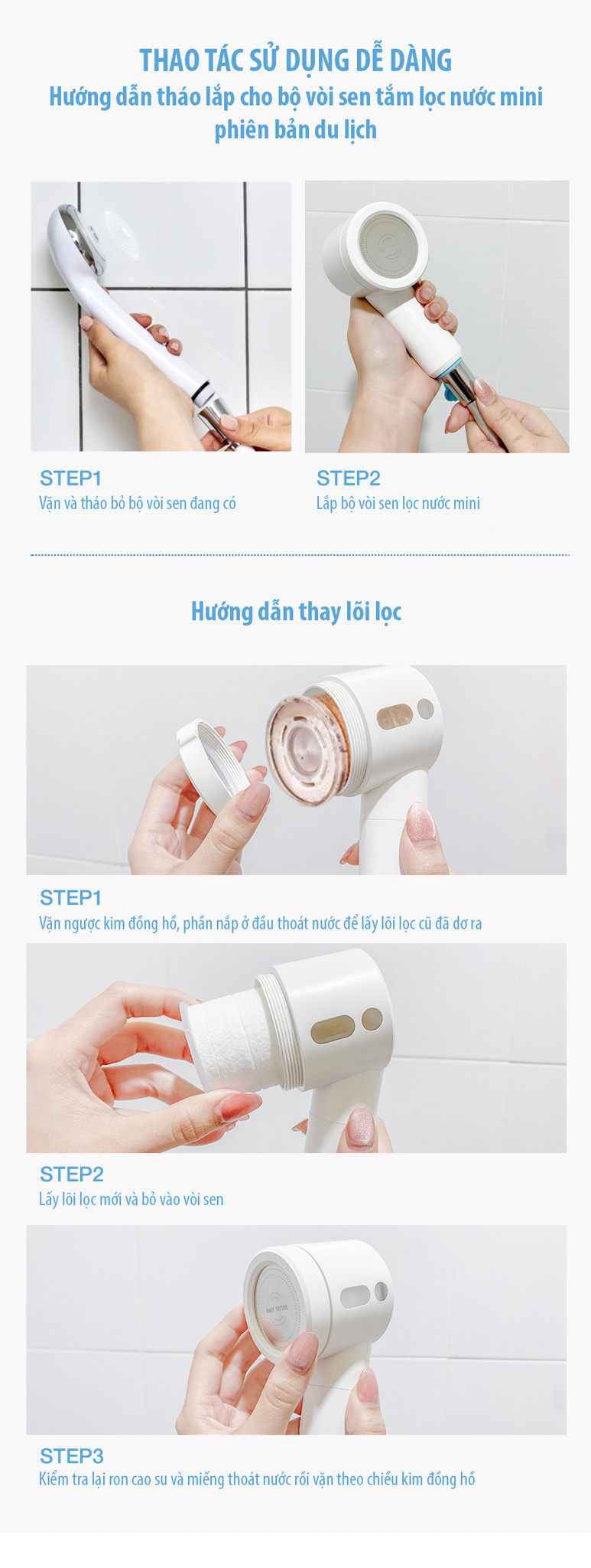 Bộ Lõi Lọc Thay Thế Cho Vòi Sen Tắm Lọc Nước, Khử Khuẩn, Khử Clo Hàn Quốc Bản Mini, Du Lịch