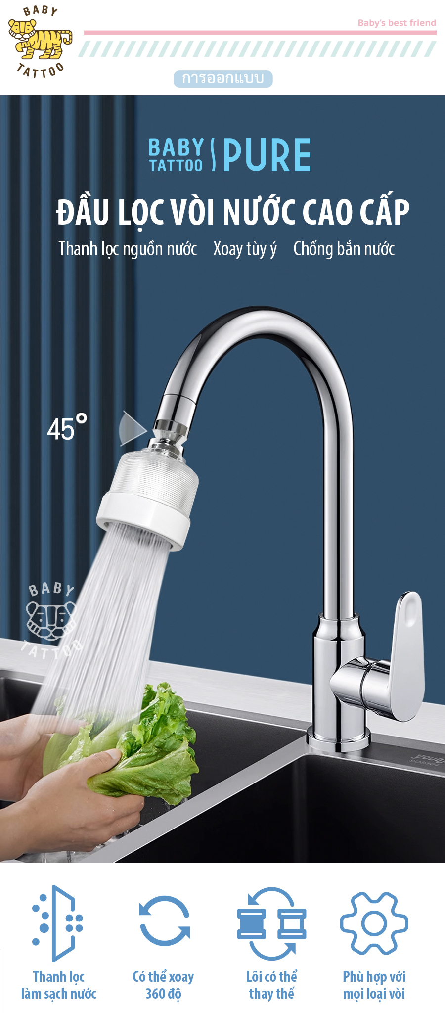 Vòi lọc nước cho bồn rửa tay, bồn rửa mặt, bồn rửa chén