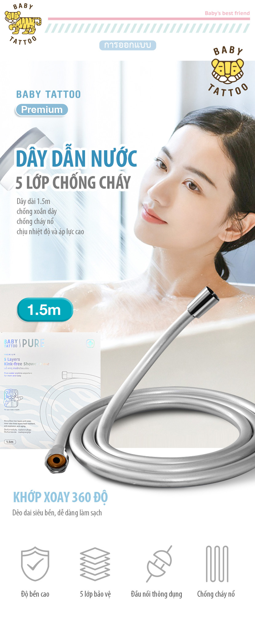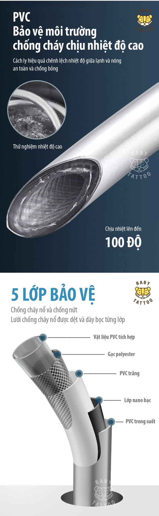 Thiết kế 5 lớp chống cháy, chống xoắn dây, chịu nhiệt và chịu áp lực cao