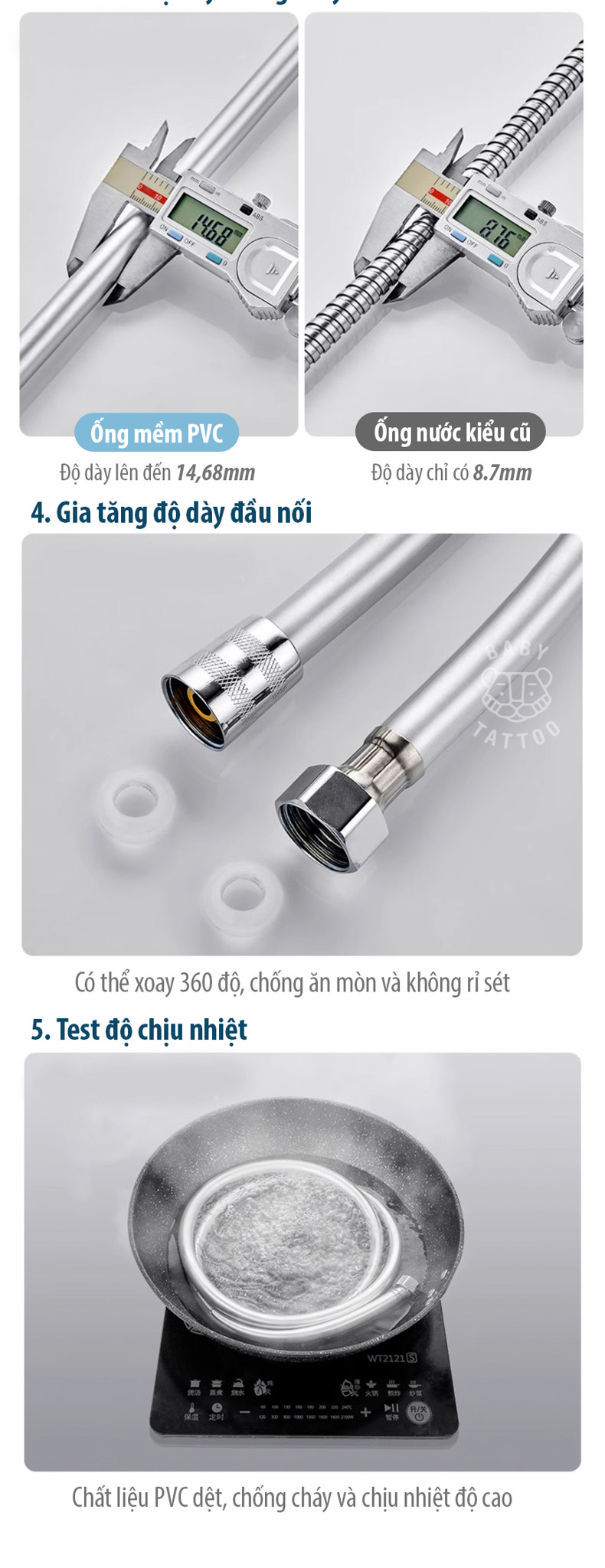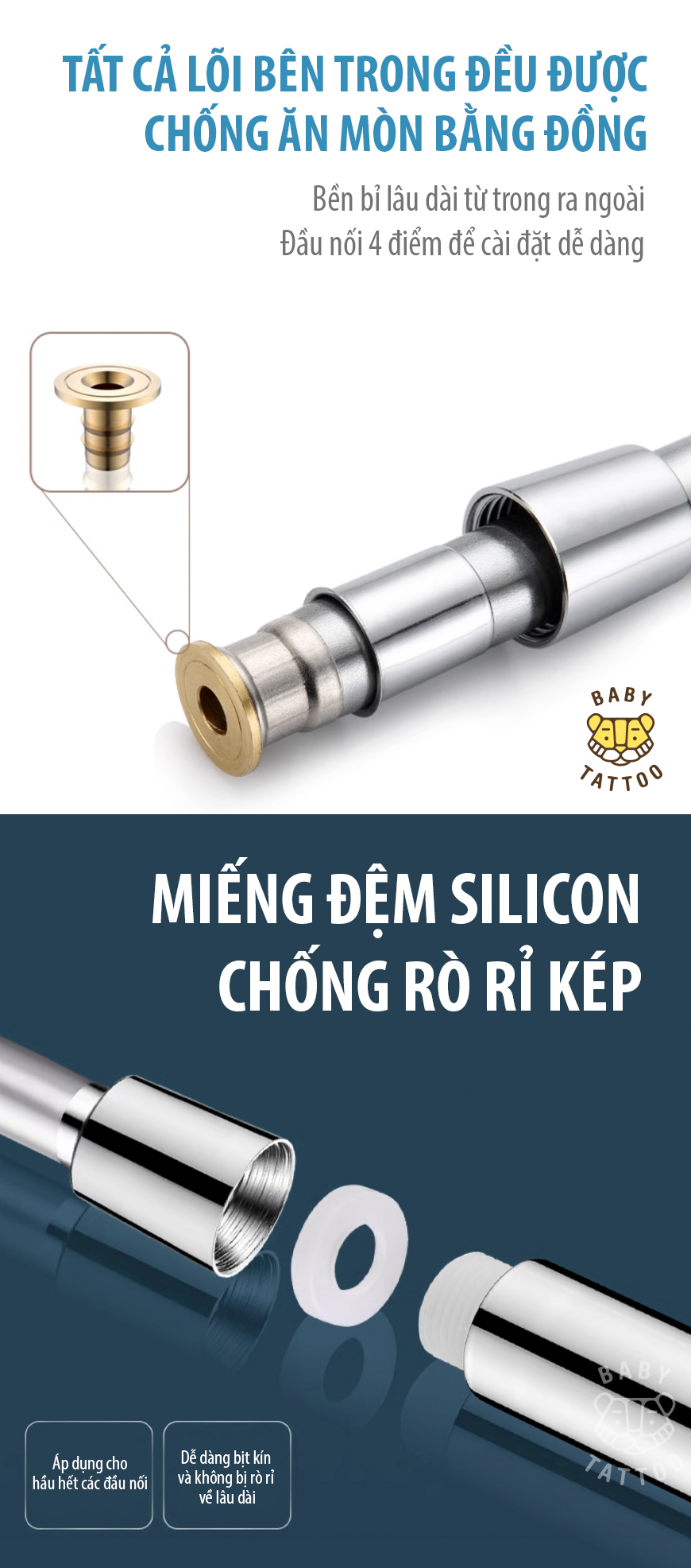 Thiết kế ron, đệm Silicone dày, chống rò rỉ nước hiệu quả